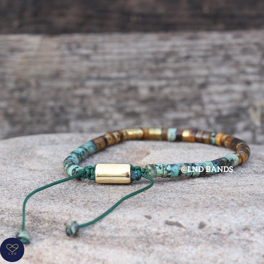 African Turquoise with Tiger Eye Minimalist Bracelet, Adjustable 4mm Beaded Bracelet, Tibetan Bracelet, Natural Stone Bracelet, Yoga, Boho