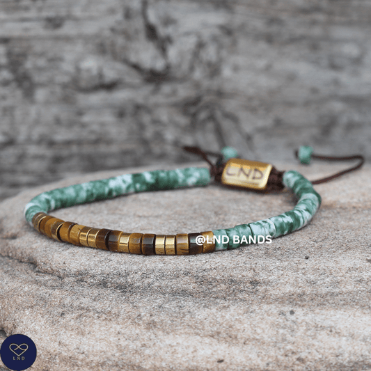 Tiger Eye Green Spot Jasper Minimalist 2x4mm Bracelet, Adjustable Beaded Bracelet, Tibetan Bracelet, Natural Stone Bracelet, Yoga, Boho