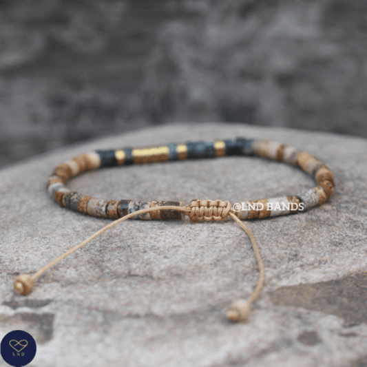 Tiger Eye Green Spot Jasper Minimalist 2x4mm Bracelet, Adjustable Beaded Bracelet, Tibetan Bracelet, Natural Stone Bracelet, Yoga, Boho