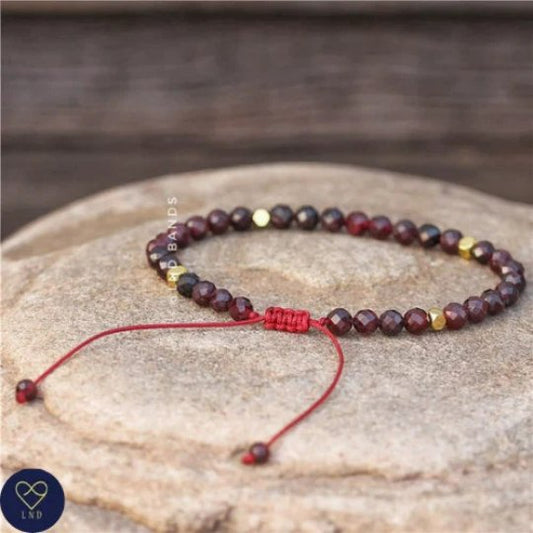 Garnet Beaded Bracelet, Tibetan Bracelet, Adjustable Gemstones Dainty Bracelet, Yoga, Minimalist Bohemian Bracelet, Love, January Birthstone