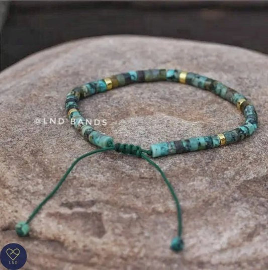 African Turquoise Minimalist Bracelet, Adjustable 2x4mm Beaded Bracelet, Tibetan Bracelet, Natural Stone Bracelet, Yoga