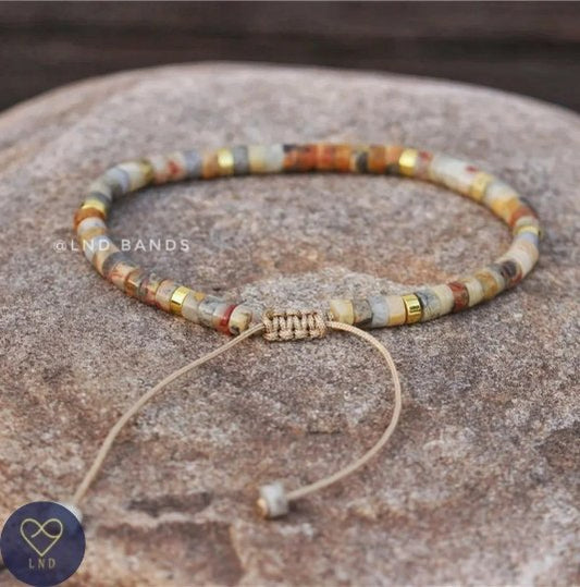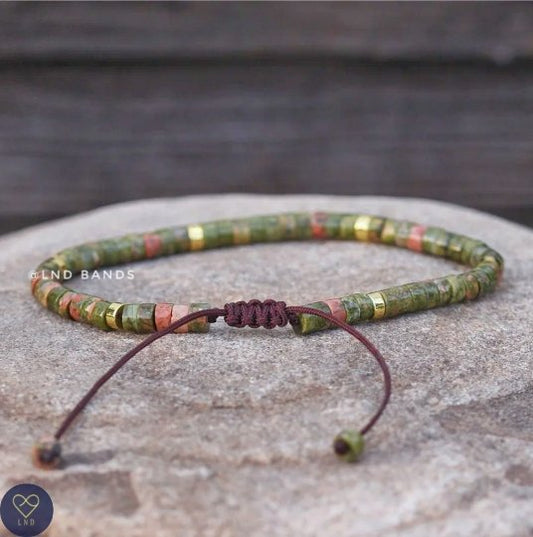 Unakite 2x4mm Bead Bracelet, Adjustable High Quality Minimalist Bohemian Bracelet, Natural Stone Bracelet, Dainty Yoga Ethno Bracelet