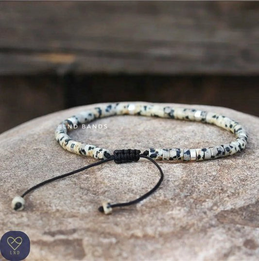 Dalmatian Jasper Bracelet, Adjustable 2x4 mm Beaded Bracelet, Minimalist Bracelet, Natural Stone Bracelet, Yoga Ethnic Boho style