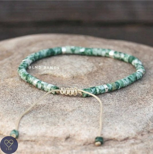 Green Spot Jasper 2x4mm Bead Bracelet, Adjustable Dainty Minimalist Ethnic Bohemian Bracelet, Yoga Meditation gemstone bracelet