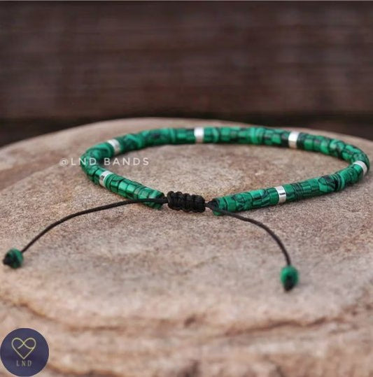 Malachite Dainty 2x4mm Adjustable Beaded Bracelet, Minimalist Bohemian Ethno Dainty Bracelet, Tibetan gemstone, synthetic malachite beads