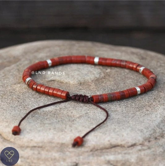 Red Jasper 2x4mm Dainty Minimalist Bracelet, Spiritual Meditation Beaded Adjustable Bracelet, Boho Tibetan Ethnic style, Birthday gift