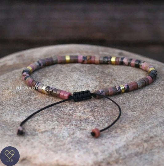 Rhodonite 2x4mm Bead Bracelet, High Quality Adjustable Bracelet, Yoga Ethnic Boho Minimalist Bracelet, Natural Stone Bracelet, no alloy