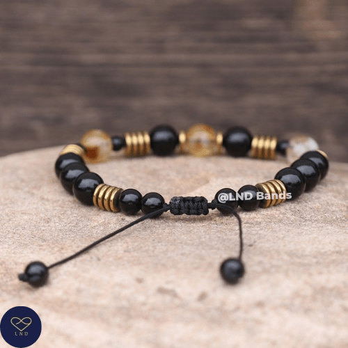 Black Onyx Citrine 8mm round beads Minimalist Adjustable Bracelet, Tibetan Yoga Boho Ethnic, joy, success, stress relieve