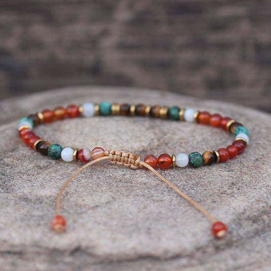 Carnelian Tiger Eye Moonstone African Turquoise 4mm round beads Adjustable Bracelet, Tibetan, Yoga, Boho, Ethnic, protection, intuition