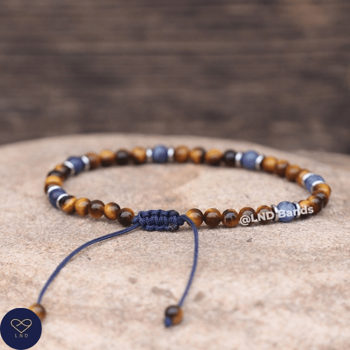 Lapis Lazuli Tiger Eye Bracelet 4mm round beads, Adjustable Tibetan Minimalist Gemstone Bracelet, Yoga Ethno Boho, Gift for him, strength