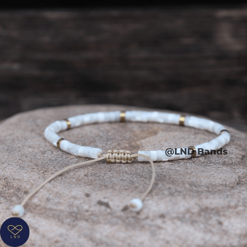 Mother of Pearl 2x4mm Adjustable Bracelet, Meditation Bohemian Bracelet, Yoga Bracelet, Gemstone, Balance, calming, stress relief, healing