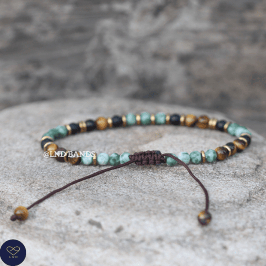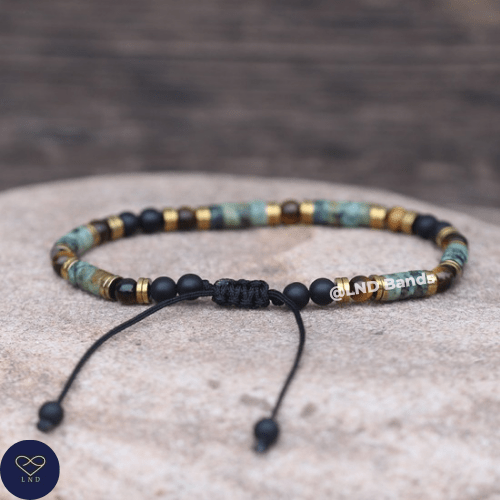 Onyx African Turquoise Tiger Eye Bracelet, Adjustable 4mm Bracelet, Tibetan Minimalist Gemstone Bracelet, Yoga, Boho, Gift for him her