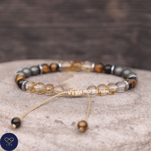 Pyrite Citrine Tiger Eye 6mm round beads Minimalist Adjustable Bracelet, Tibetan Gemstone, Yoga, Boho, Ethnic, success, luck