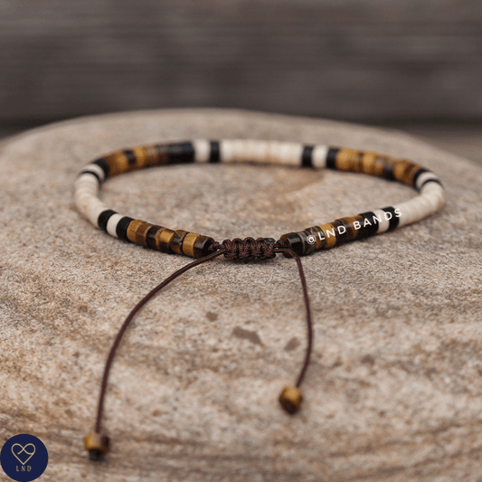 Tiger Eye Ivory Howlite 2x4mm Gemstone Bracelet, Adjustable Tibetan Minimalist Yoga Boho Bracelet, surfer, birthday gift, courage, power