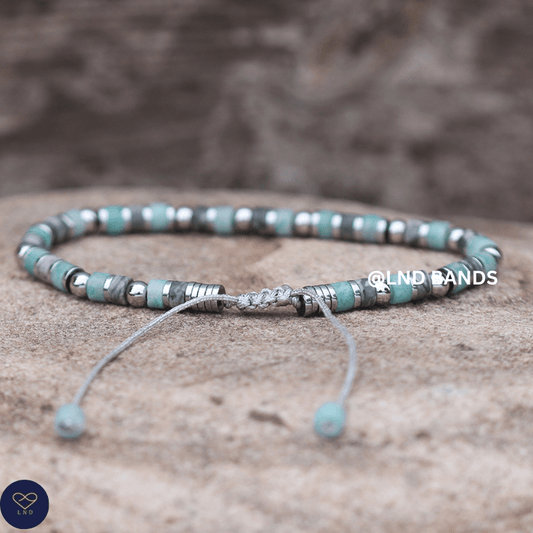 Turquoise Bead Bracelet - 3mm Dainty Adjustable Boho Style, Meditation, Ethnic, Yoga, elegant, clarity