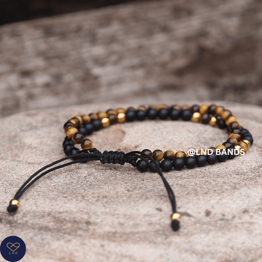 Tiger Eye Onyx double bracelet 4mm, Tibetan Adjustable Dainty, Yoga, Minimalist Bohemian, Gift for him