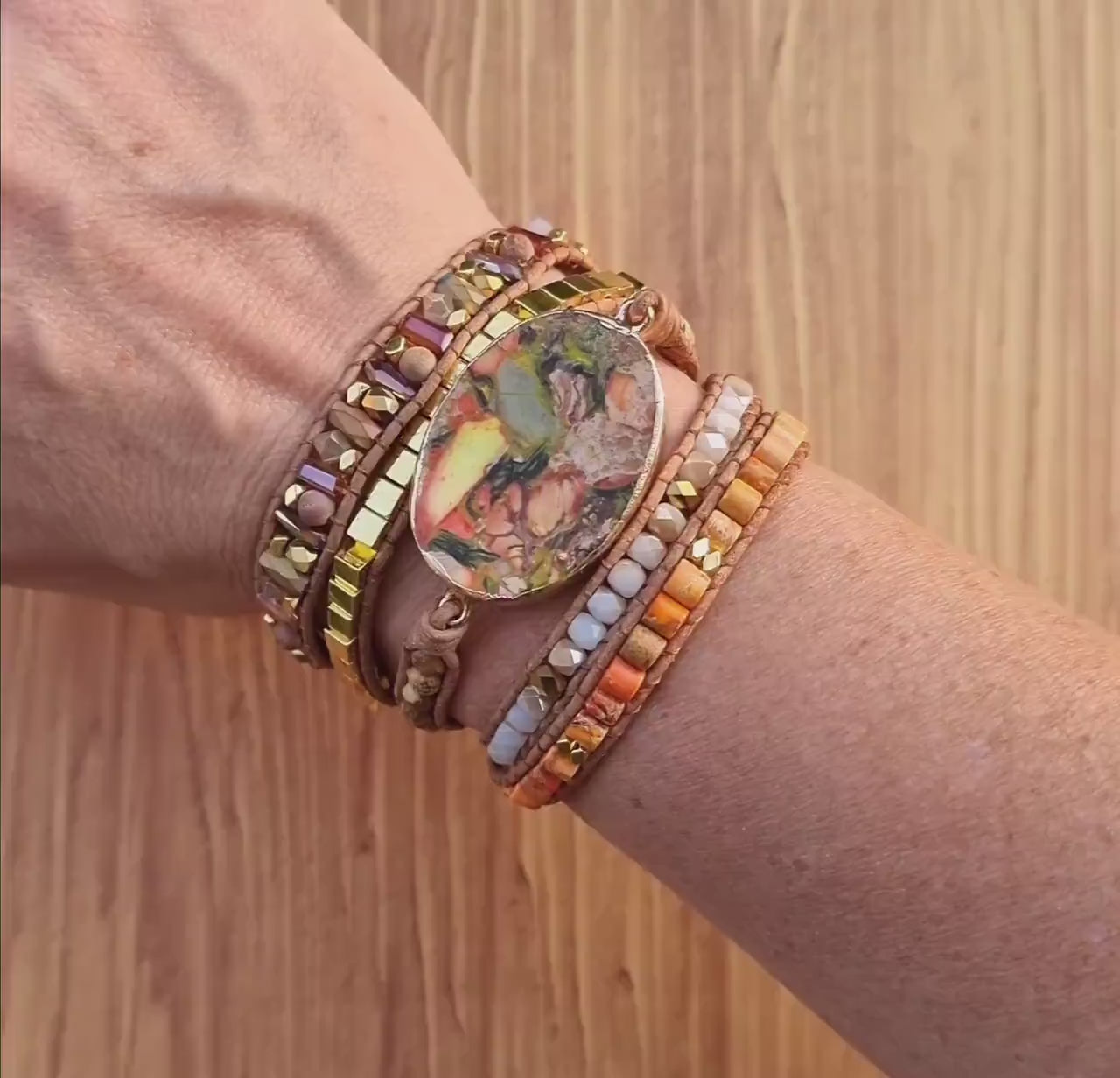 Picture Jasper Imperial Jasper Bracelet, Hematite beads, Wrap Gemstone Bracelet, Leather Wrap Bracelet, Boho Yoga Ethnic Bracelet, Crystal